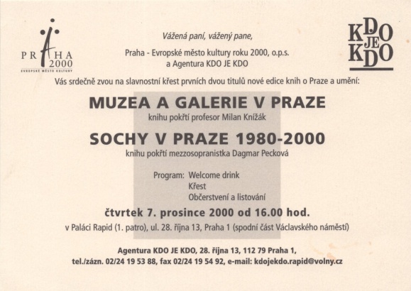 název: Muzea a galerie v Praze, Sochy v Praze 1980 - 2000