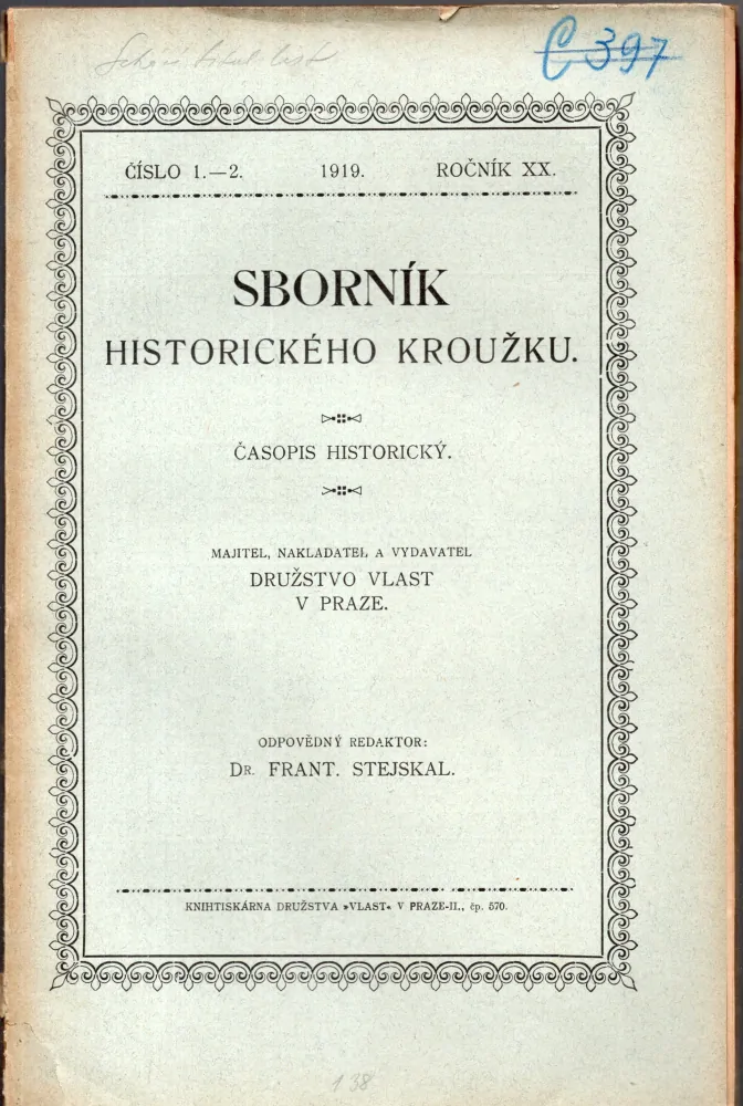 • Sborník Historického kroužku 1919 r. 20