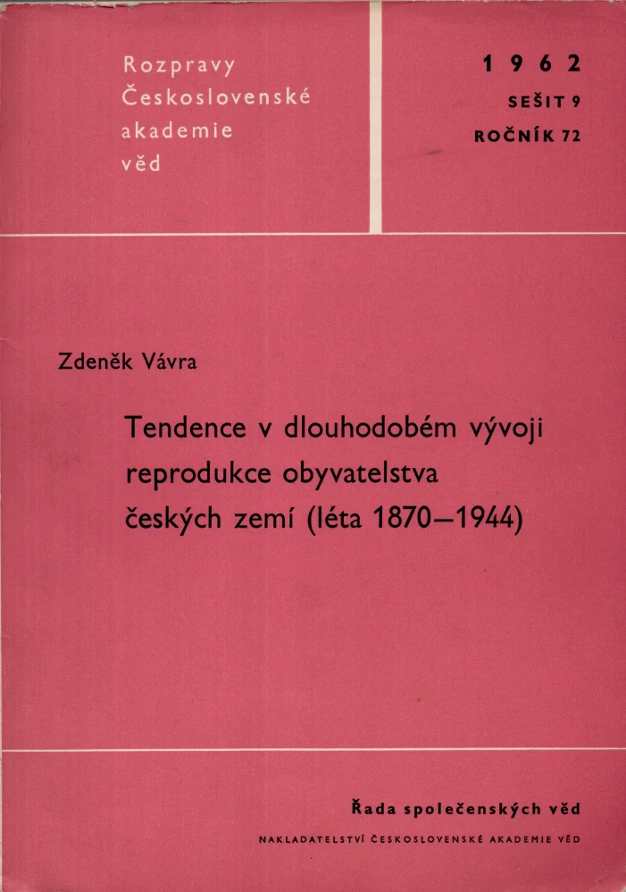 Tendence v dlouhodobém vývoji reprodukce obyvatelstva českých zemí (léta 1870-1944)Skladem 1 ks60 Kč/ ks